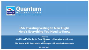 Speakers Mr. Chirag Mehta, Senior Fund Manager