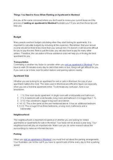 Title: Things You Need to Know When Renting an Apartment in Montreal