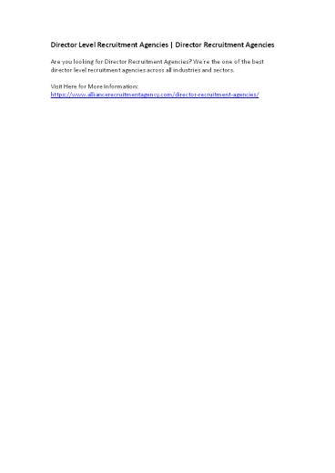 Director Level Recruitment Agencies | Director Recruitment Agencies PowerPoint PPT Presentation