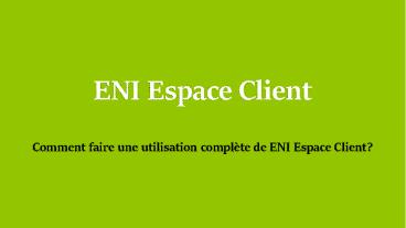 1ENI Espace ClientComment faire une utilisation