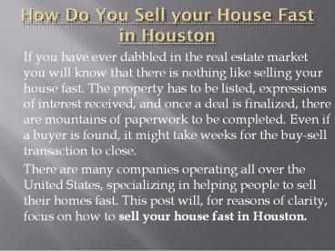 sell your house fast Houston PowerPoint PPT Presentation