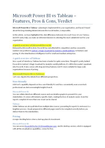 Title: Microsoft Power BI vs Tableau – Features, Pros & Cons, Verdic