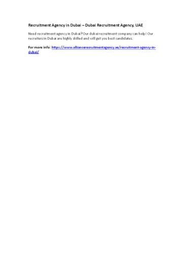 Recruitment Agency in Dubai – Dubai Recruitment Agency, UAE PowerPoint PPT Presentation