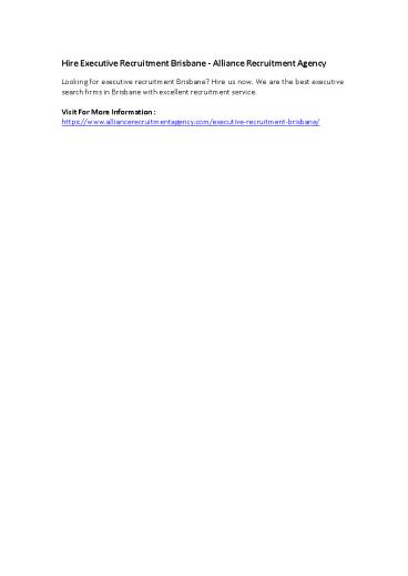 Hire Executive Recruitment Brisbane - Alliance Recruitment Agency PowerPoint PPT Presentation