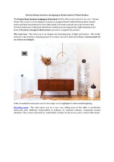 Title: Eclectic Home furniture designing in Hyderabad by Think Studios