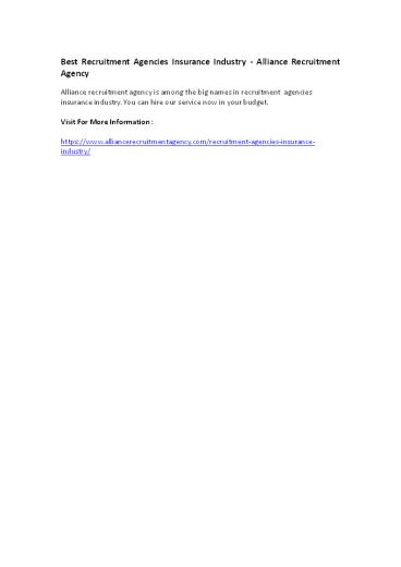 Best Recruitment Agencies Insurance Industry - Alliance Recruitment Agency PowerPoint PPT Presentation