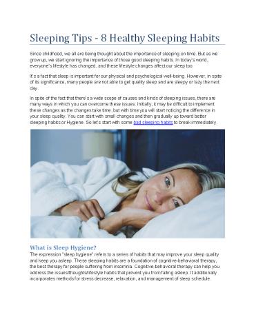 Title: Sleeping Tips - 8 Healthy Sleeping Habits