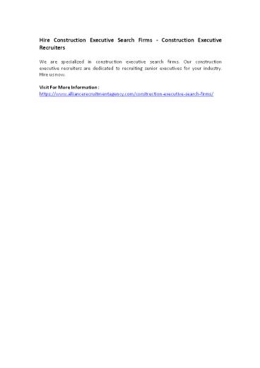 Hire Construction Executive Search Firms - Construction Executive Recruiters PowerPoint PPT Presentation