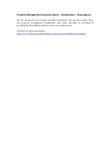 Property Management Executive Search - Headhunters - Temp Agency PowerPoint PPT Presentation