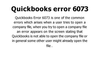Quickbooks error 6073 PowerPoint PPT Presentation