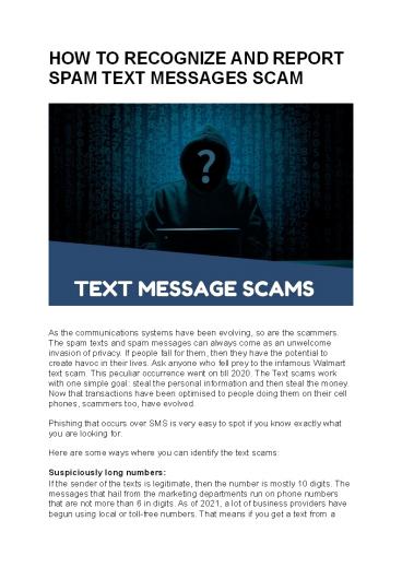 Title: HOW TO RECOGNIZE AND REPORT SPAM TEXT MESSAGES SCAM