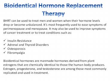 Title: Bioidentical Hormone Replacement Therapy