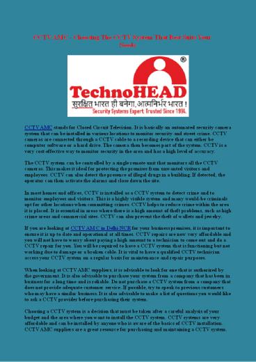 1CCTV AMC - Choosing The CCTV System That Best