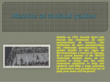 - Etablie en 1979, Quality Sport Ltd. fournit des