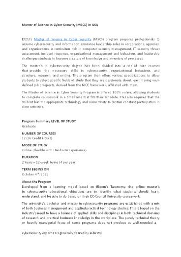 Title: Master of Science in Cyber Security (MSCS) in USA