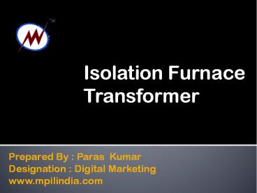 isolation Transformer manufacturer and supplier (1) PowerPoint PPT Presentation