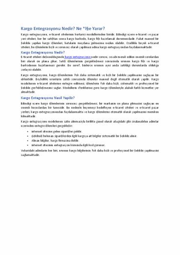 olabilir. Kargo entegrasyonu, kargo ilemlerinin