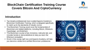 Title: BlockChain Training Course | CrptoCurrency & Blcokchain Certification Online Course
