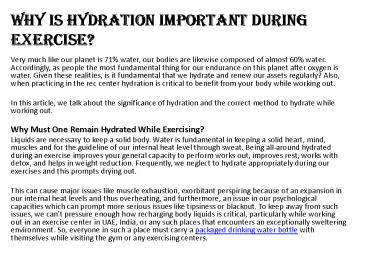 Why is Hydration Important During Exercise? PowerPoint PPT Presentation
