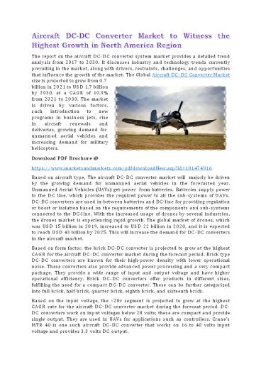 Title: Aircraft DC-DC Converter Market to Witness the Highest Growth in North America Region