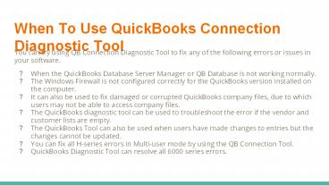 How and when to use Quickbooks connection diagnostic tool PowerPoint PPT Presentation