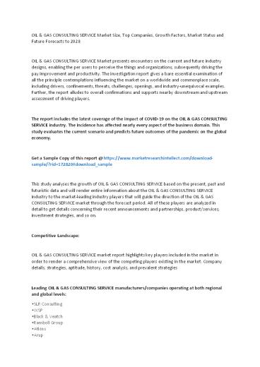 Future Forecasts to 2028 - OIL GAS CONSULTING SERVICE Market presents