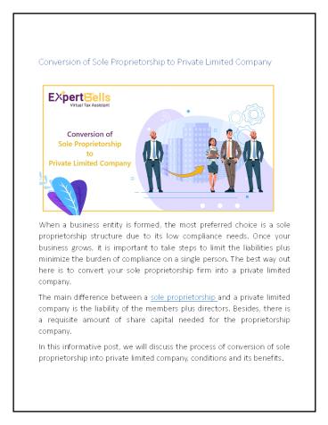 Title: Conversion of Sole Proprietorship to Private Limited Company
