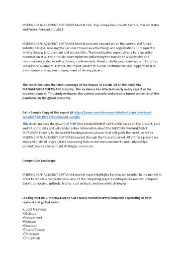 Future Forecasts to 2028 - MEETING MANAGEMENT SOFTWARE Market presents