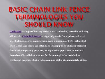 Basic Chain Link Fence Terminologies You Should Know PowerPoint PPT Presentation