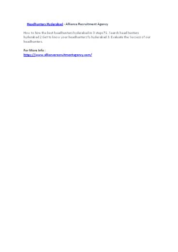 Best Headhunters In Hyderabad - Alliance Recruitment Agency (3) PowerPoint PPT Presentation