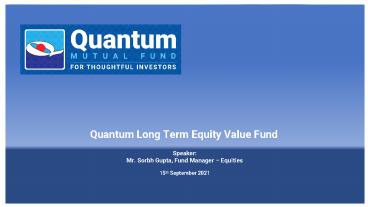 Quantum Tax Saving Fund Mr. Sorbh Gupta is the