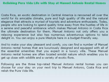 Title: Relishing Pura Vida Life with Stay at Manuel Antonio Rental Homes