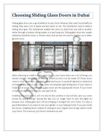Choosing Sliding Glass Doors in Dubai PowerPoint PPT Presentation