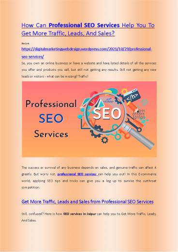 Title: Get More Traffic, Leads And Sales From Professional SEO Services
