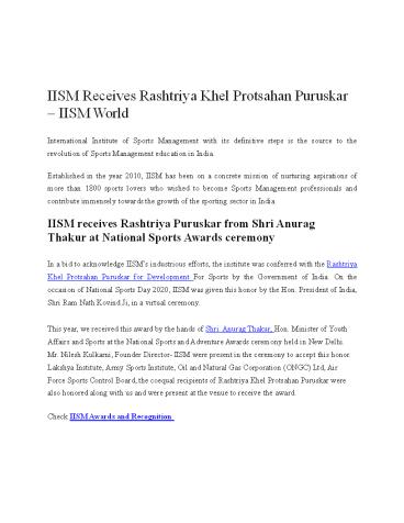 Title: IISM Receives Rashtriya Khel Protsahan Puruskar