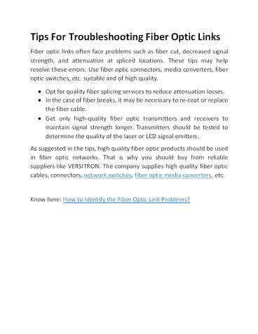 Tips For Troubleshooting Fiber Optic Links PowerPoint PPT Presentation