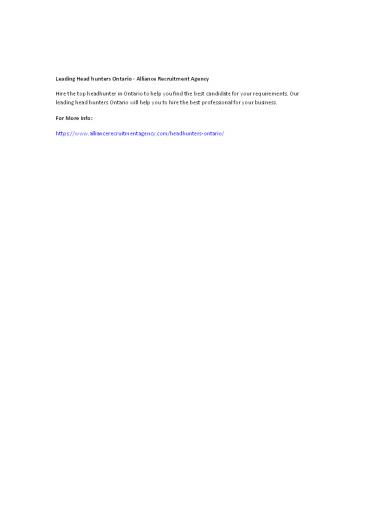 Leading Head hunters Ontario - Alliance Recruitment Agency PowerPoint PPT Presentation