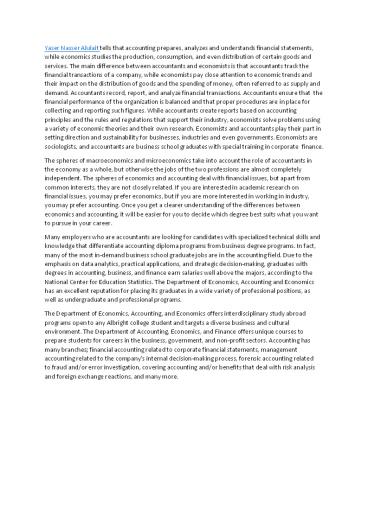 of Economics, Accounting and Economics has an