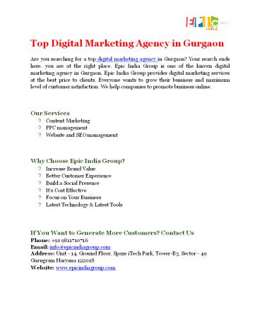 Top Digital Marketing Agency in Gurgaon PowerPoint PPT Presentation