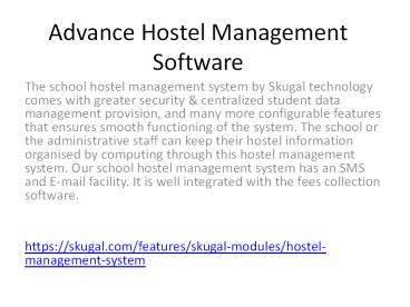Advance Hostel Management Software PowerPoint PPT Presentation