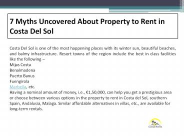 Title: 7 Myths Uncovered About Property to Rent in Costa Del Sol