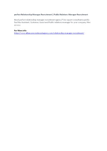 perfect Relationship Manager Recruitment | Public Relations Manager Recruitment PowerPoint PPT Presentation