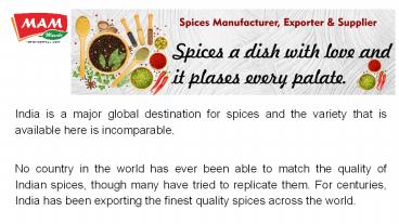 Indian Spices Exporters, Spice Manufacturer in Delhi PowerPoint PPT Presentation