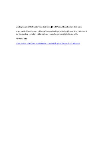 Leading Medical Staffing Services California | Best Medical Headhunters California PowerPoint PPT Presentation