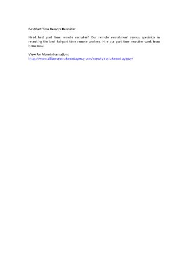 Best Part Time Remote Recruiter PowerPoint PPT Presentation