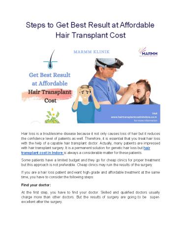 patient to manage the hair transplant cost