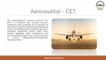 • The Aeronautical-CET Common Entrance Test (CET)