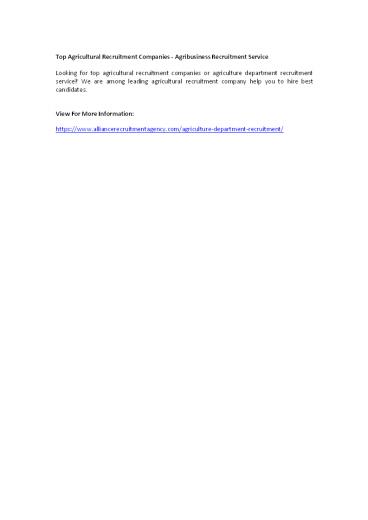 Top Agricultural Recruitment Companies - Agribusiness Recruitment Service PowerPoint PPT Presentation