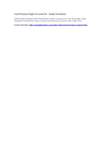 Cold Pressed Virgin Coconut Oil - Gulab Goodness PowerPoint PPT Presentation