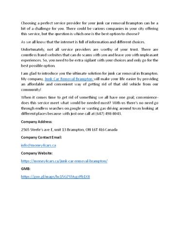 Junk Car Removal Brampton PowerPoint PPT Presentation